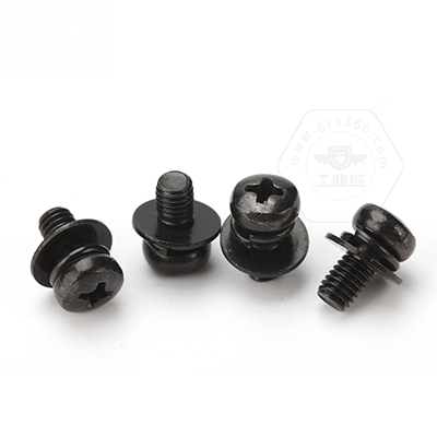 • 碳鋼4.8級(jí)黑色鋅鎳合金(48/360h)十字槽盤頭帶平彈墊組合螺釘GB9074.4N